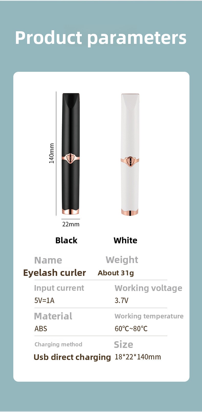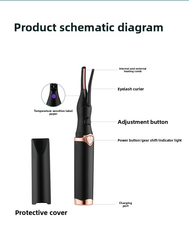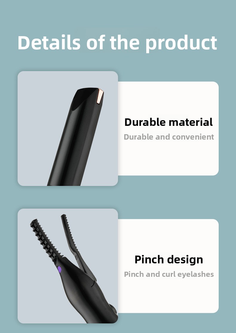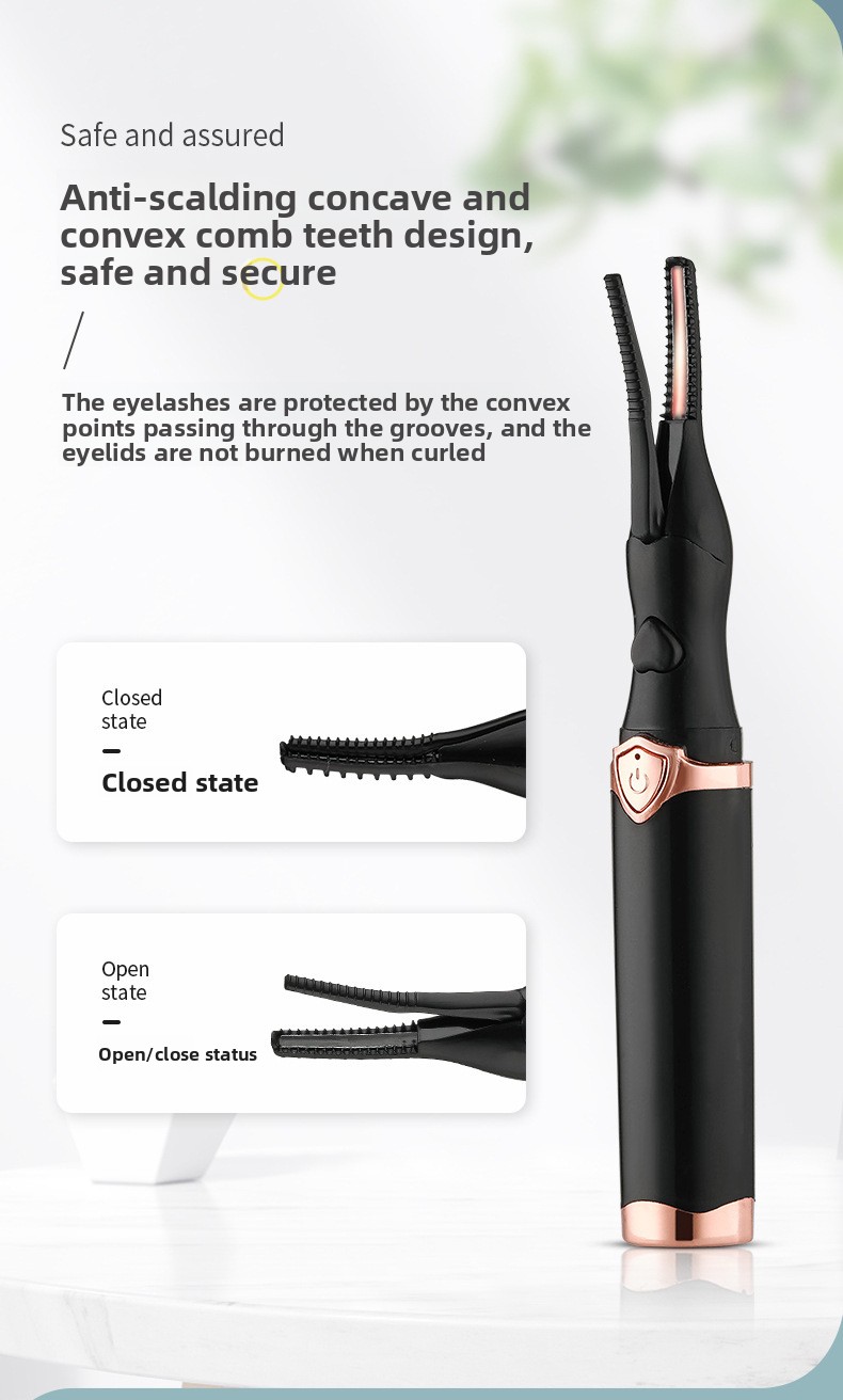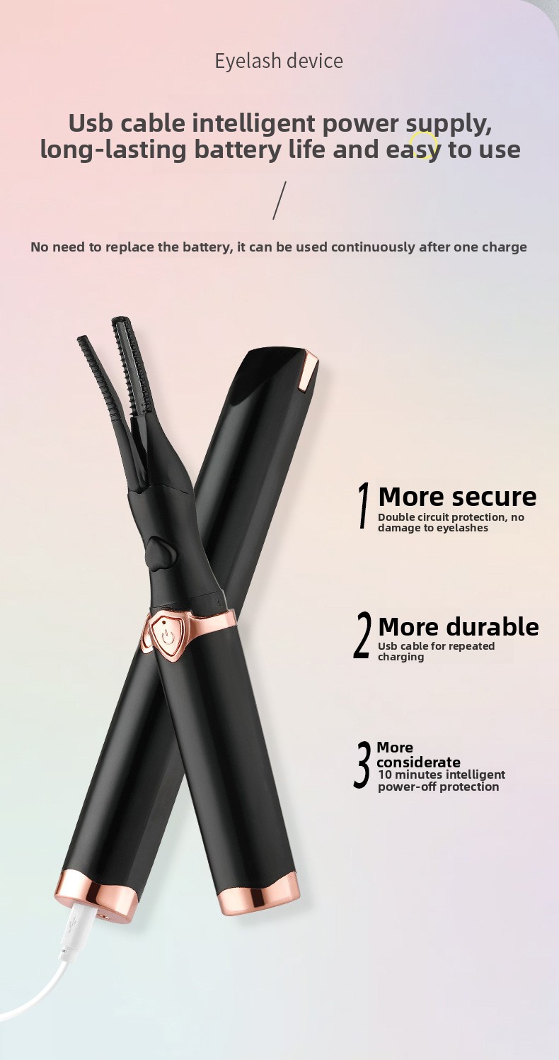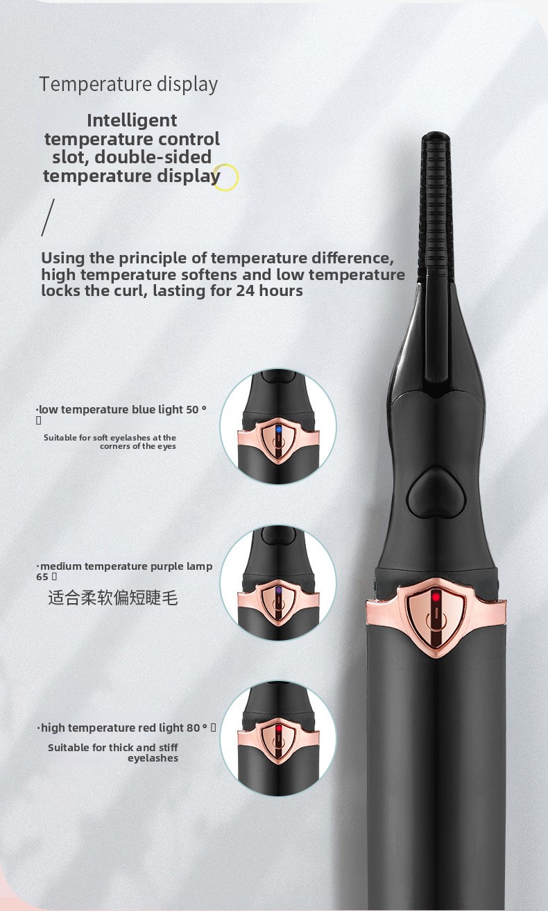 Electric Heating - USB-charged eyelash curler with safe 60-80? working temperature for lasting curl